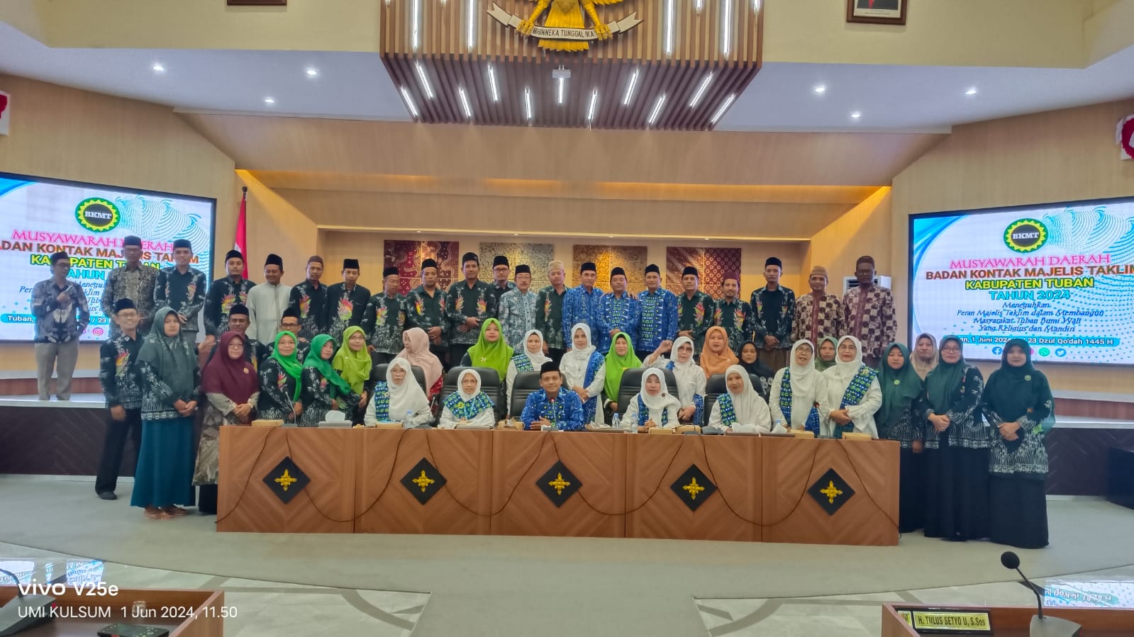 Tuban_Kemenag), Badan Kontak Majelis Taklim (BKMT) Kabupaten Tuban menyelenggarakan Musyawarah Daerah (Musda) dengan tema “Meneguhkan Peran Majelis Taklim dalam Membangun Masyarakat Tuban Bumi Wali yang Religius dan Mandiri”. Acara ini dihadiri oleh 80 peserta, termasuk perwakilan dari berbagai organisasi keagamaan dan tokoh masyarakat. Musda berlangsung di Gedung DPRD Lantai Dua Kabupaten Tuban dari pukul 08:00 hingga 11:30 WIB pada hari Sabtu, 1 Juni 2024, bertepatan dengan Hari Kelahiran Pancasila. Sabtu, (01/06/2024).