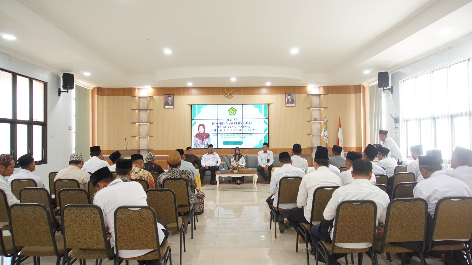 Kementerian Agama Kabupaten Tuban yang digawangi oleh Seksi Penyelenggaraan Haji dan Umrah mengadakan giat Rapat Koordinasi Persiapan Pembuatan Paspor Jemaah Haji 1446 H/2025 M di Gedung PLHUT, Senin (30/9/2024). Acara diikuti oleh seluruh Kepala KUA dan Ketua KBIHU.