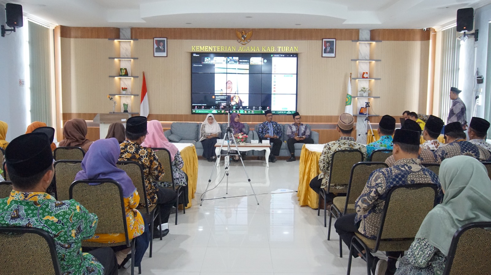 Kepala Kantor Kementerian Agama Kabupaten Tuban Umi Kulsum membuka Pembelajaran Ramadan untuk Madrasah di Aula PLHUT, Rabu (26/2/2025) secara luring diikuti oleh seluruh Pengawas Madrasah dan secara daring oleh seluruh Kepala Madrasah se-Kabupaten Tuban.