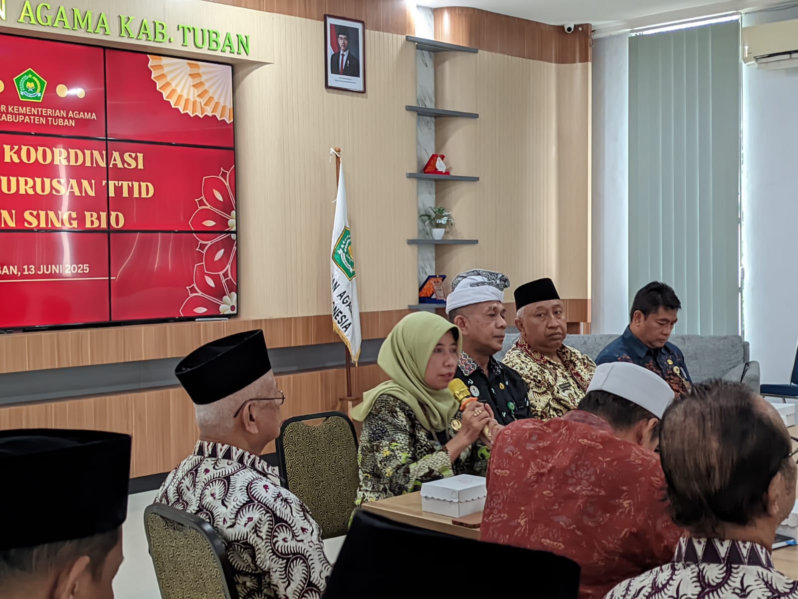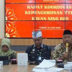 Kementerian Agama Kabupaten Tuban mengambil inisiatif memfasilitasi polemik kepengurusan Klenteng TTID Kwan Sing Bio yang dilaksanakan di Aula PLHUT, Jumat (13/6/2025). Rapat dihadiri oleh Kepala Kemenag Tuban beserta jajaran, Pembimas Budha dari Kanwil Kemenag Jatim, Staf Ahli Pemerintahan, Hukum dan Politik Kabupaten Tuban, Bakesbangpol, Pengurus FKUB, Polres, Kodim dan media pers.
