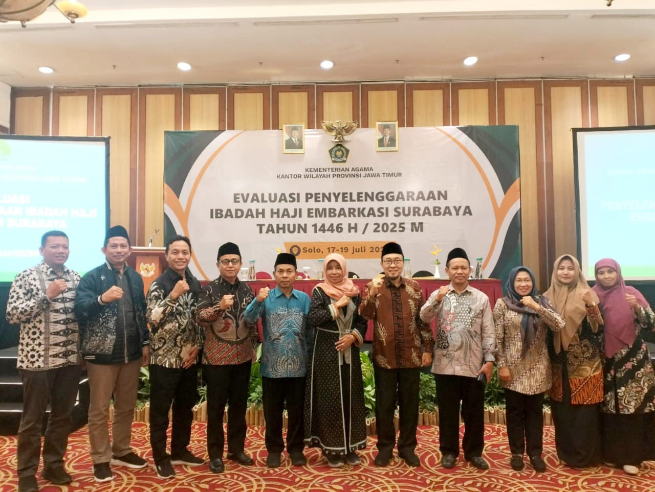 Solo(Humas)–Penyelenggaraan ibadah haji Embarkasi Surabaya Tahun 1446 H/2025 M sedang dievaluasi secara menyeluruh dalam sebuah rapat koordinasi penting di Solo. Acara yang berlangsung mulai tanggal 17 hingga 19 Juli 2025 ini dihadiri oleh berbagai pemangku kepentingan utama, dipimpin langsung oleh Kepala Kantor Wilayah Kementerian Agama Provinsi Jawa Timur.