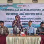 Kepala Kantor Kementerian Agama Kabupaten Tuban Umi Kulsum menggandeng Kejaksaan yang dalam hal ini diwakili oleh Kasi Perdata dan Tata Usaha Negara Kajari Tuban untuk memberikan pembinaan dan sosialisasi kepada kepala madrasah dan bendahara madrasah wilayah Kecamatan Widang, Plumpang, Grabagan dan Soko di MI Mambaul Islam Losari, Soko, Kamis (14/8/2025).