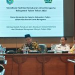 Kab. Tuban(Humas)—Pelaksana Tugas Kasubbag Tata Usaha Kantor Kementerian Agama Kabupaten Tuban, Imam Syafi’i, mewakili Kepala Kantor Kemenag Tuban, memaparkan peran strategis Kementerian Agama dalam menjaga kerukunan umat beragama. Penyampaian tersebut dilakukan dalam kegiatan Sosialisasi Fasilitasi Kerukunan Umat Beragama yang digelar di ruang rapat Dandang Wacono, Rabu (10/12/2025) oleh Kesbangpol Kabupaten Tuban.