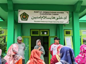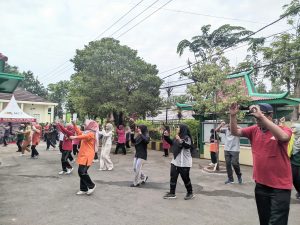 Senam dilaksanakan di halaman kantor dan diikuti oleh semua jajaran dari level pimpinan sampai staf sebagai bagian dari program rutin 1 minggu sekali untuk meningkatkan kesehatan dan kebugaran warga Kemenag Tuban.